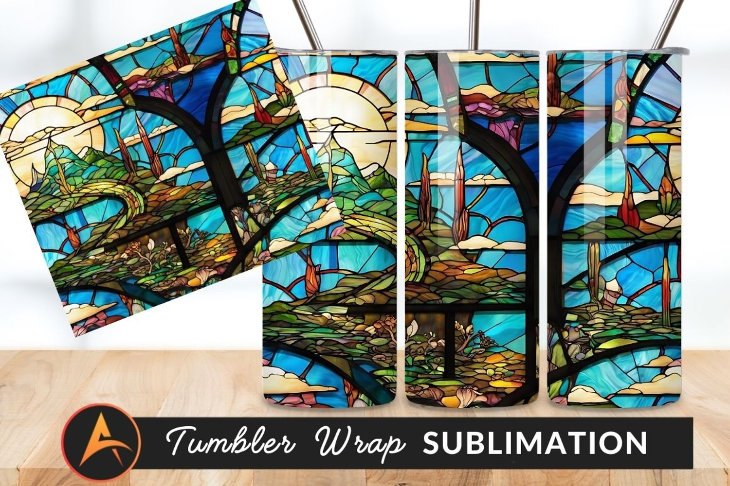Stained Glass Landscape Artwork Tumbler Png example image 1