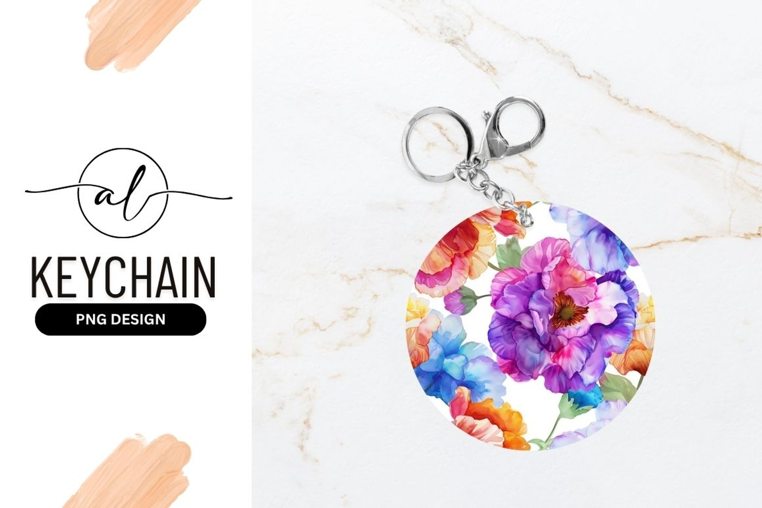 Watercolor Design Colorful Floral Flower Decoration Peony Accessory Keychain Round Keychain
