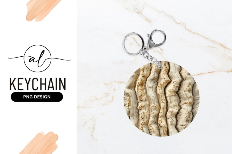 Round Keychain With Wooden Pattern Design example image 1