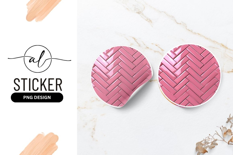 Round Sticker Design Pink Glossy Pattern Background Tile Ceramic Herringbone