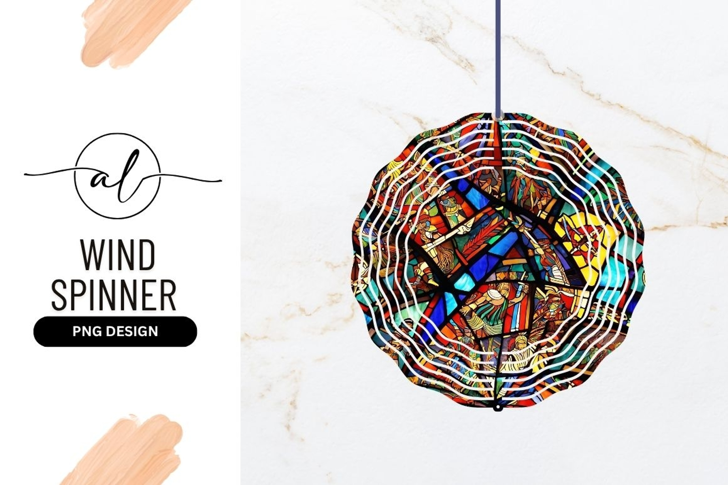 Colorful Stained Glass Wind Spinner Round Png example image 1