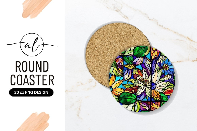 Similar Design Products to Floral Stained Glass Round Coaster Png Design