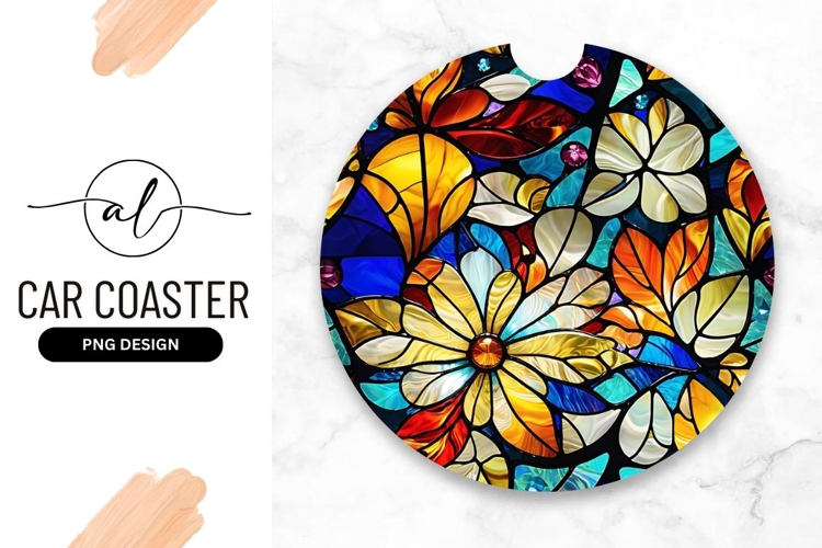 Similar Design Products to Floral Stained Glass Round Car Coaster Png