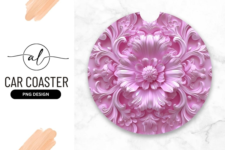 Pink Floral Ornate Round Car Coaster Png example image 1