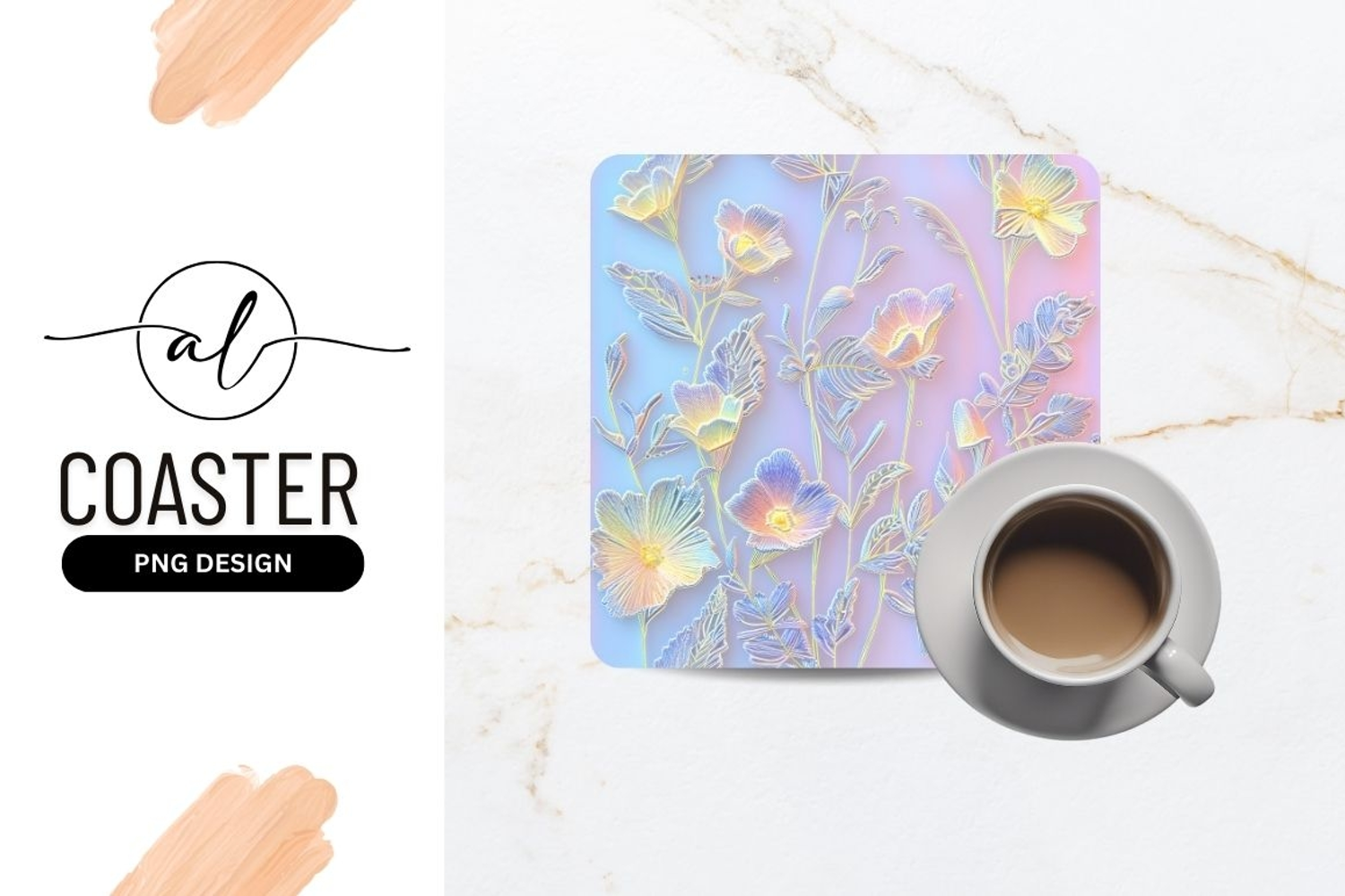 Floral Artistic Render Square Coaster Png Design example image 1