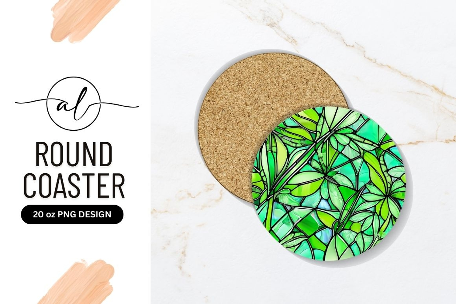 Similar Design Products to Green Floral Stained Glass Round Coaster Png