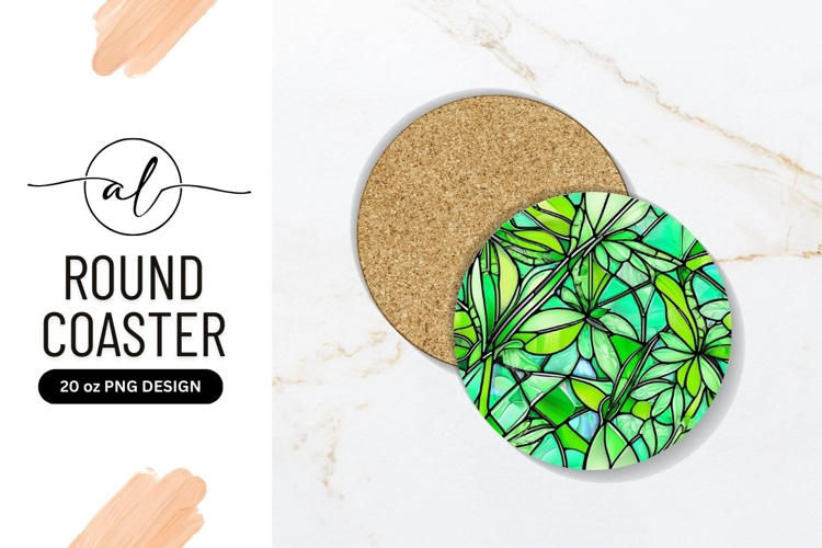 Green Floral Stained Glass Round Coaster Png example image 1