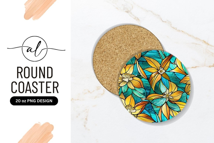 Stained Glass Floral Round Coaster Png Design example image 1