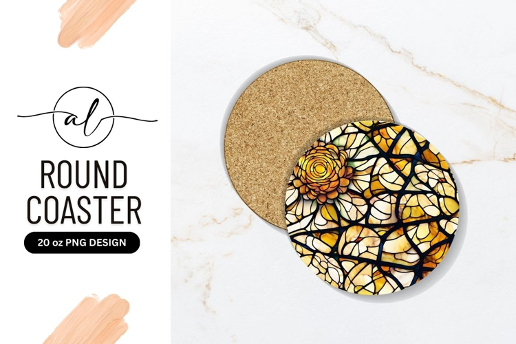 Golden Floral Stained Glass Round Coaster Png example image 1