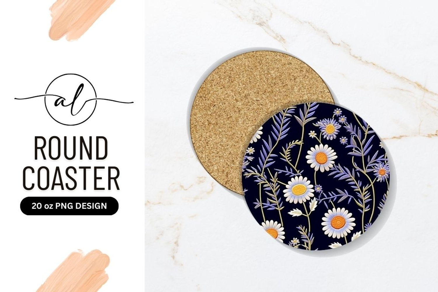Daisy Floral Pattern Round Coaster Png example image 1