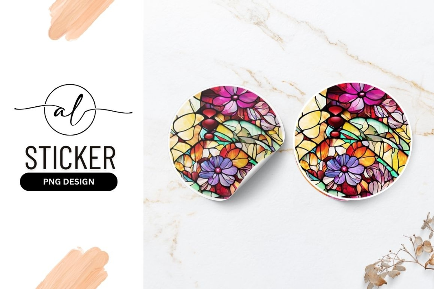Similar Design Products to Floral Stained Glass Art Round Sticker Png
