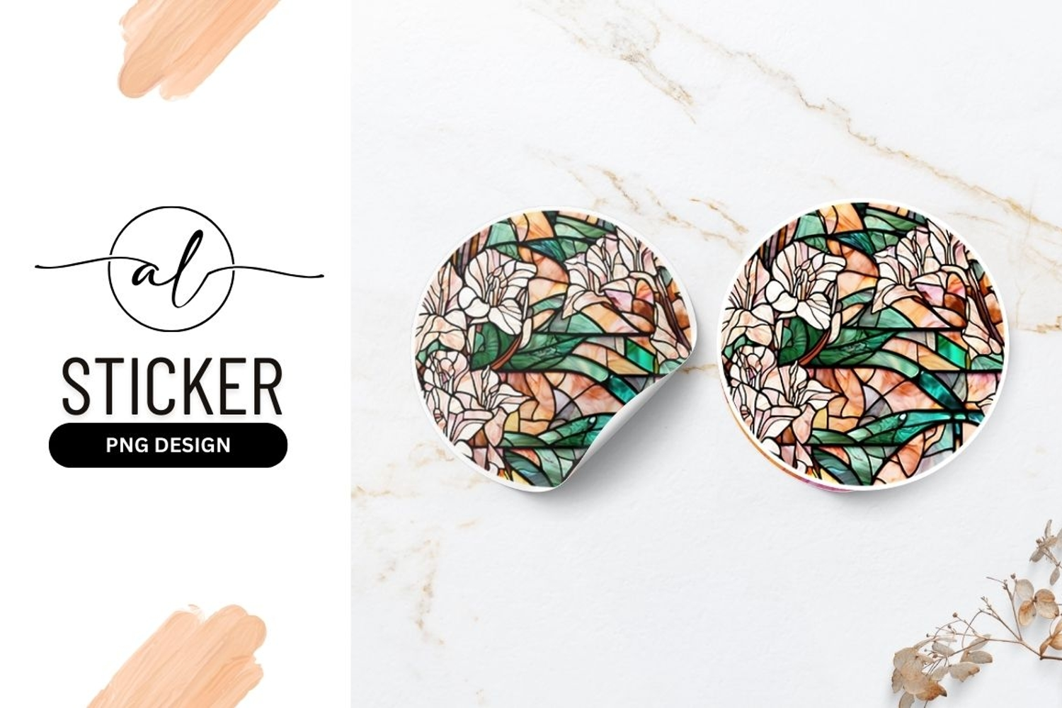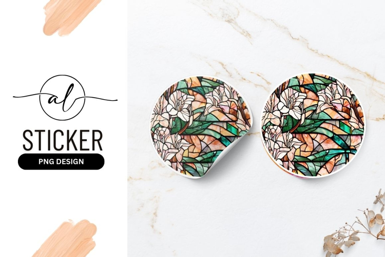 Similar Design Products to Floral Stained Glass Round Sticker Png Design