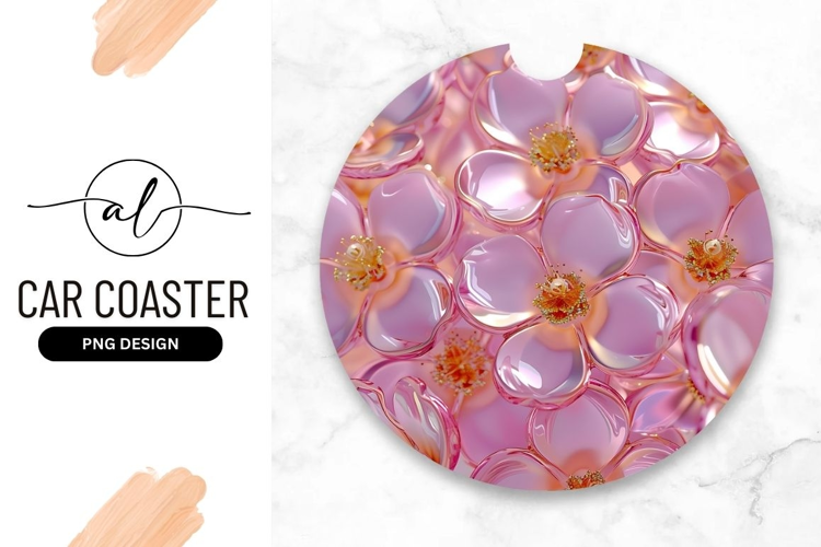 Similar Design Products to Pink Glass Flowers Round Car Coaster Png