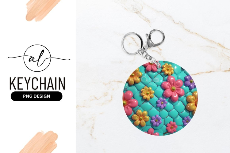 3D Flowers On Turquoise Quilted Background Round Keychain example image 1