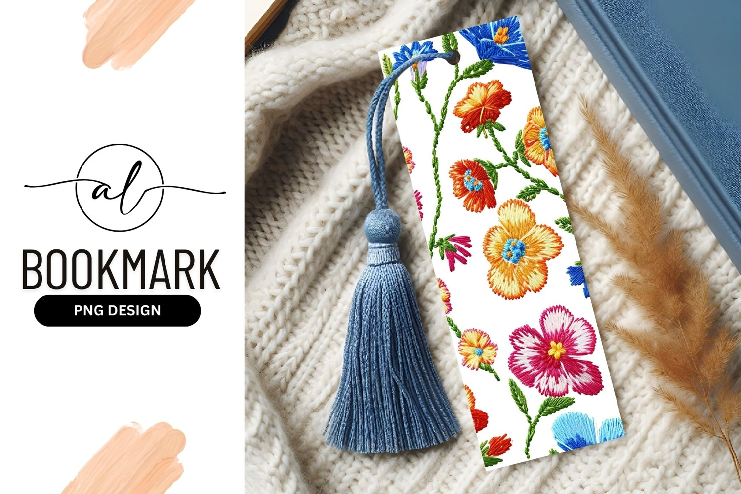 Embroidered Floral Pattern Colorful Botanical Bookmark Png example image 1