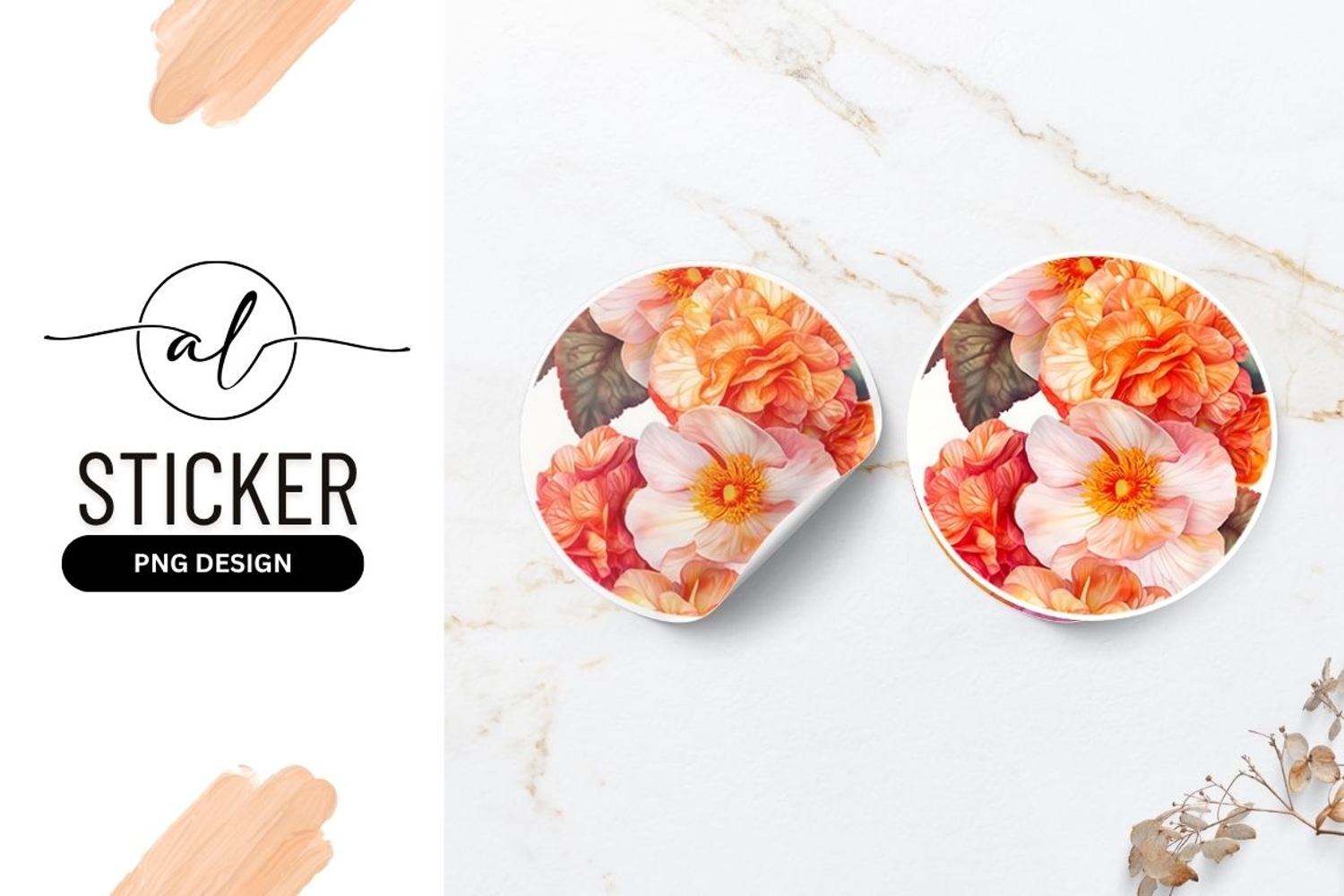 Watercolor Begonia Flowers Illustration Round Sticker Png example image 1