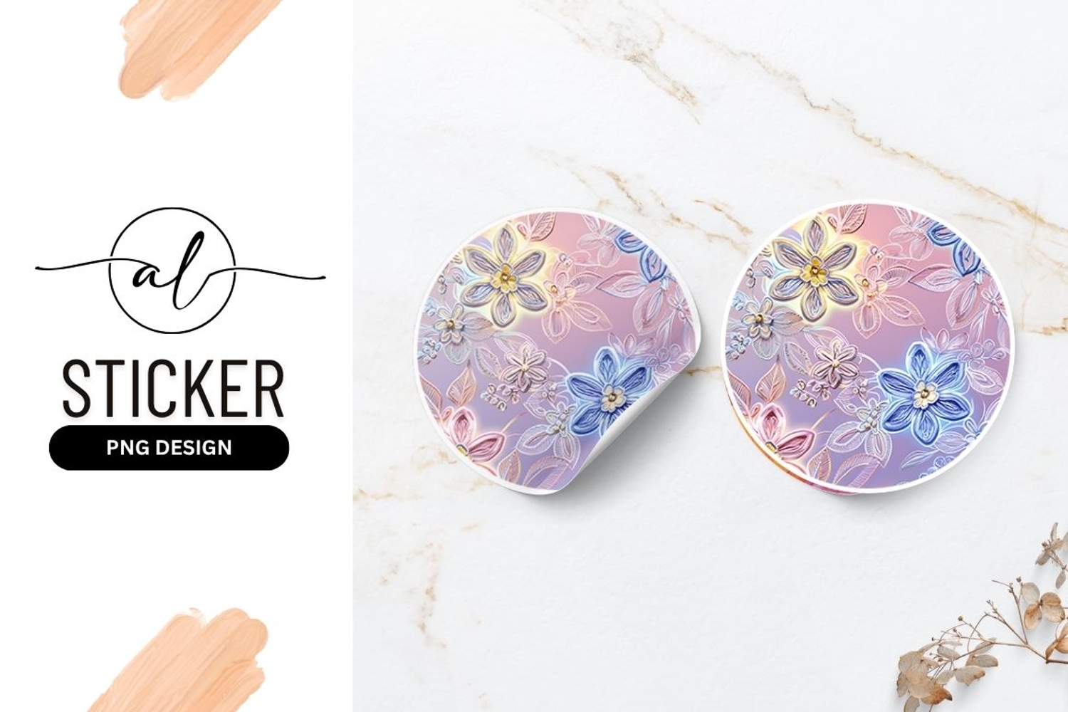 Similar Design Products to Floral Round Sticker Png Delicate Pastel Design