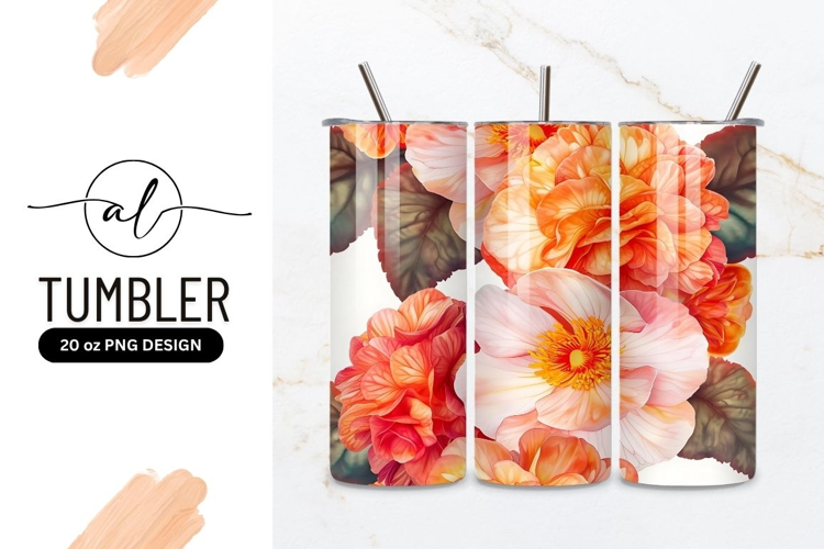 Elegant Orange Begonia Flower Seamless Pattern example image 1