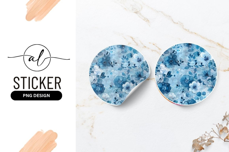 Watercolor Floral Round Sticker In Shades Of Blue example image 1