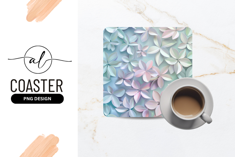 Trendy Abstract Digital Art Floral Pattern Flower Background Iridescent Pastel Colors Paper Cut Seamless Texture Square Coaster