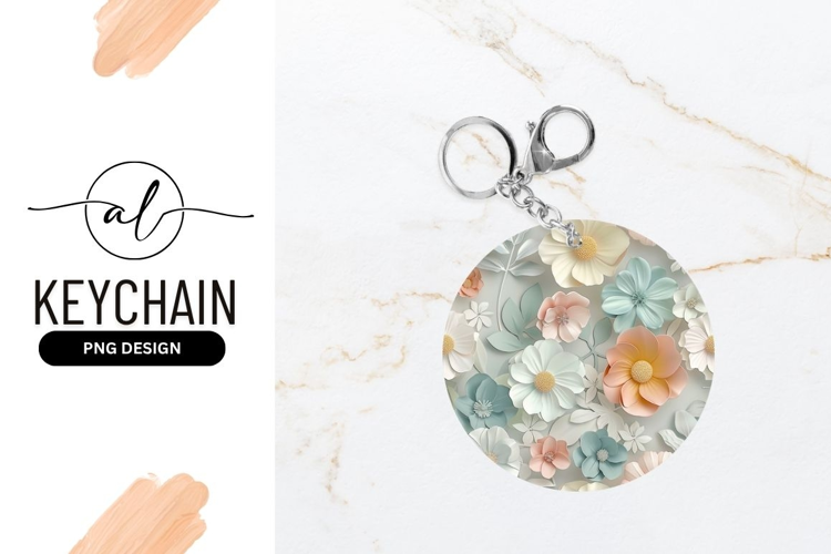 Pastel Floral Arrangement Round Keychain Png example image 1