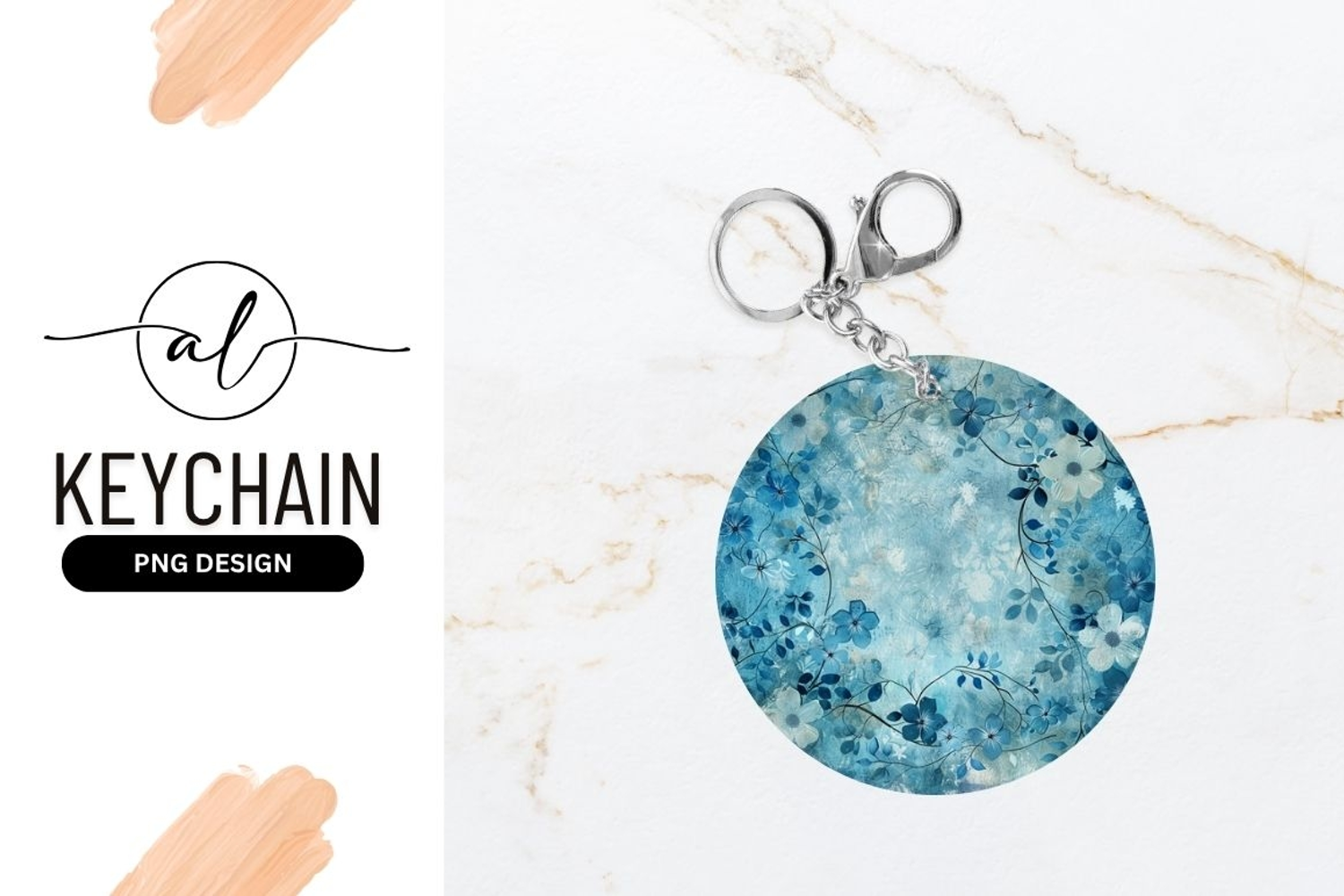 Similar Design Products to Blue Floral Design Round Keychain Png