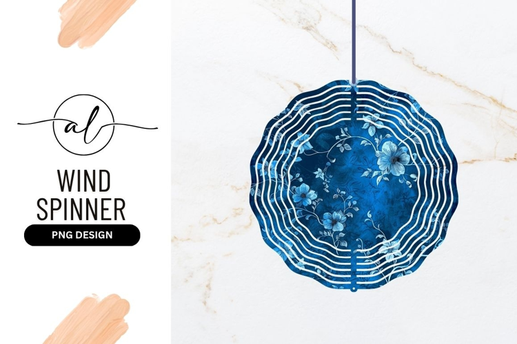 Blue Floral Pattern Round Wind Spinner Png example image 1