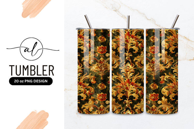 Golden Floral Damask Seamless Pattern Tumbler Png example image 1