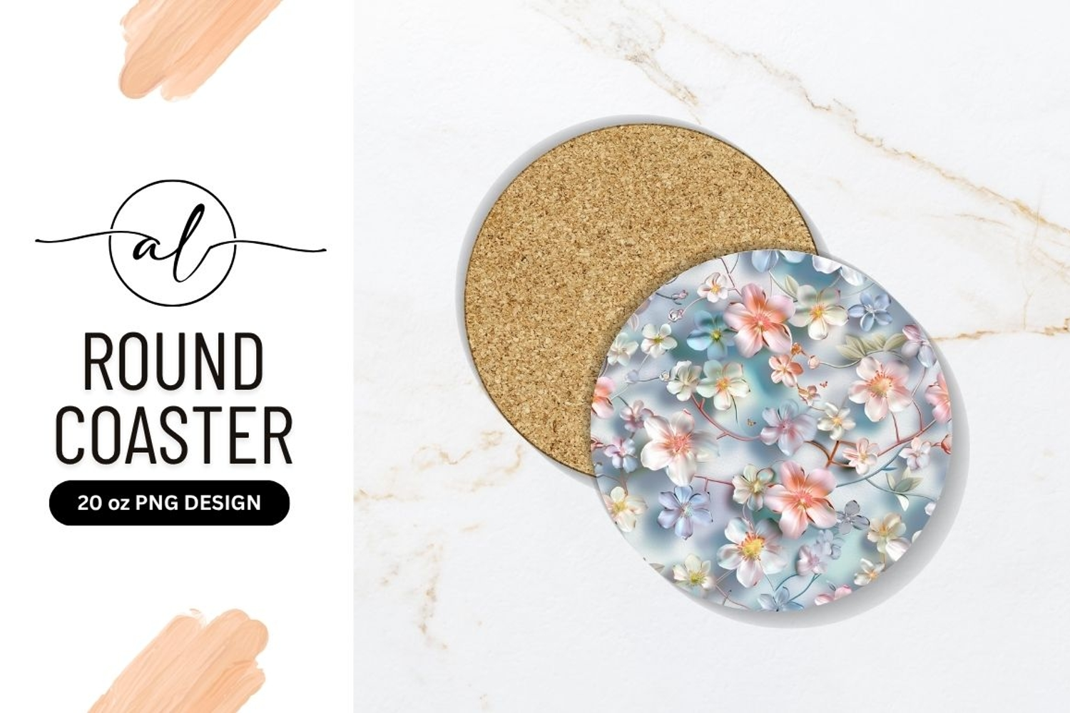 Floral Round Coaster Design with Pastel Flowers and Branches example image 1