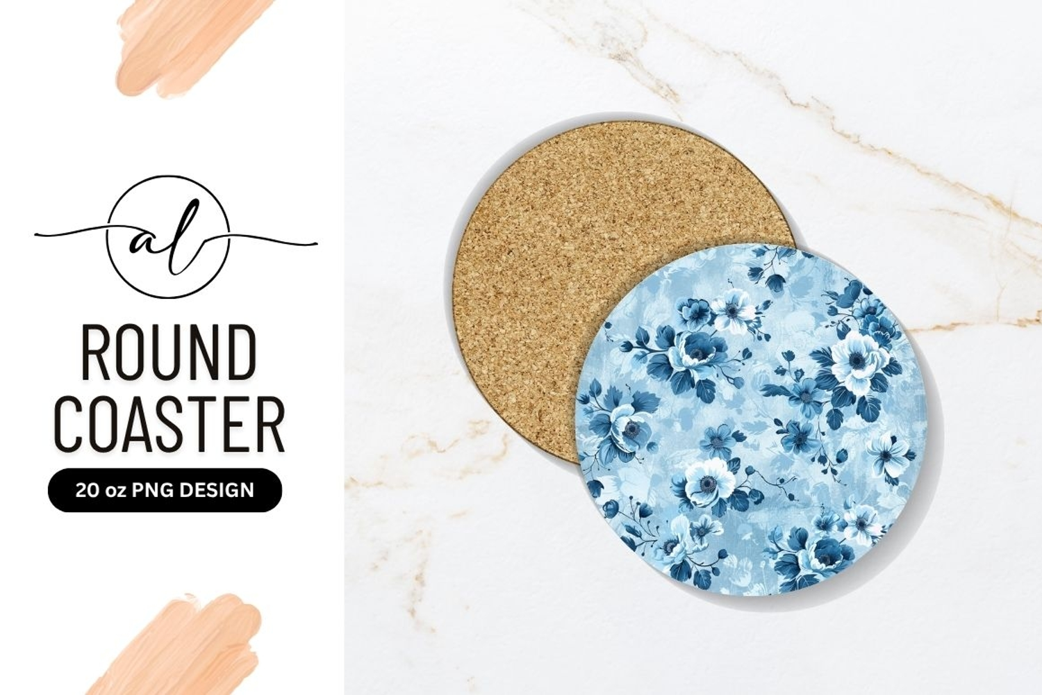 Round Coaster with Blue Floral Pattern on Light Blue example image 1