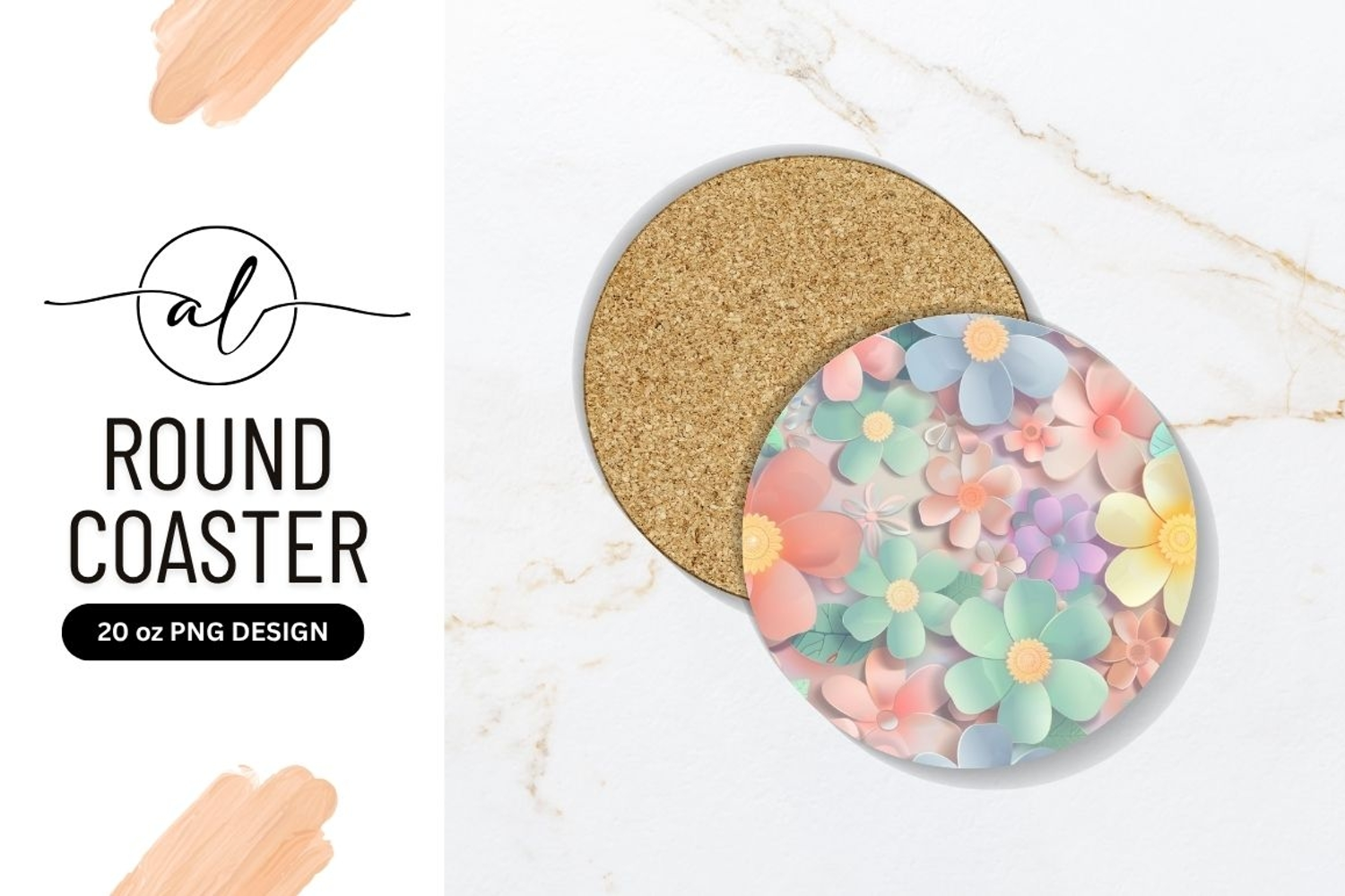 Pastel Floral Arrangement in a Round Coaster Design example image 1
