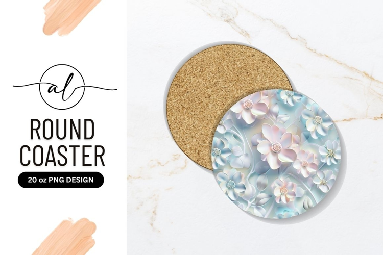 Pastel Floral Design on Round Coaster with White and Pink example image 1