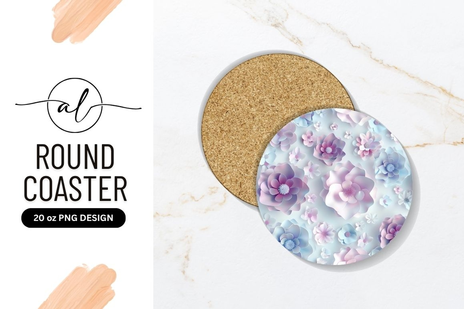 3d Layered Pink Floral Lavender Blue White Pastel Paper Flowers Round Coaster
