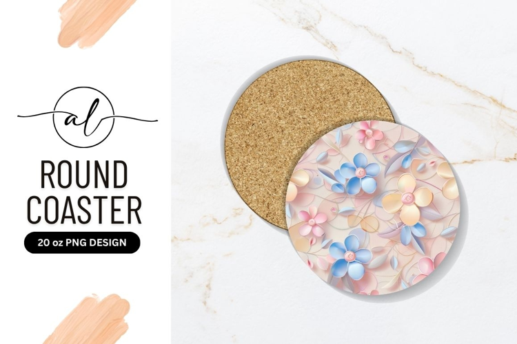Floral Round Coaster Design with Pastel Blue Pink and Yellow example image 1