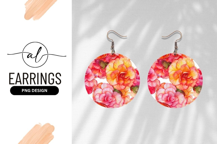 Watercolor Begonia Flowers in Pink Orange and Yellow Circle example image 1