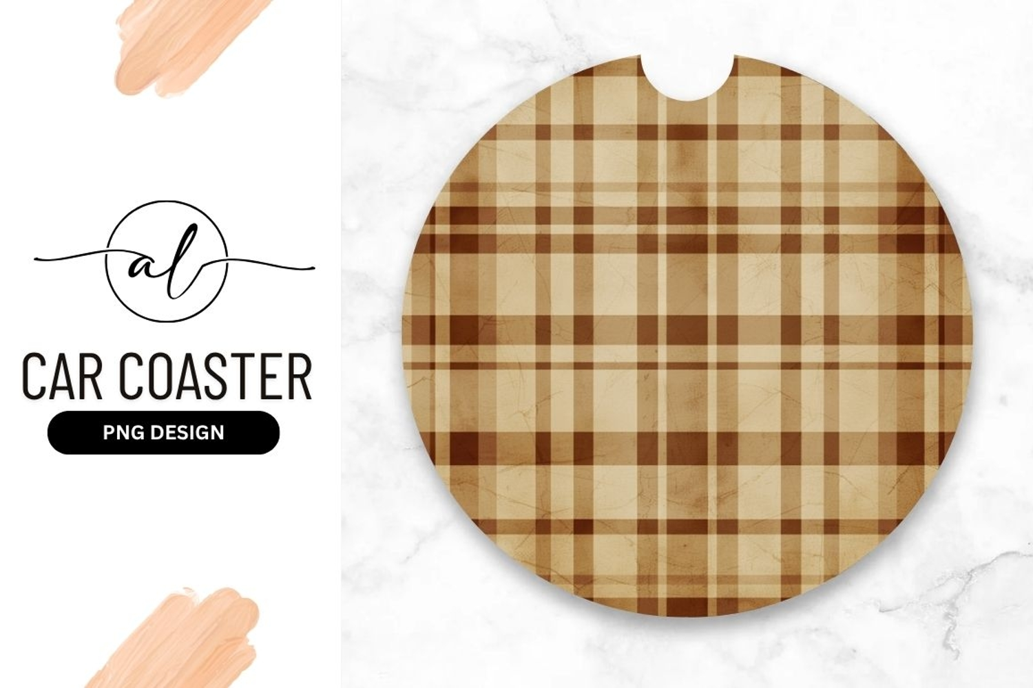 Similar Design Products to Round Car Coaster Png Beige and Brown Plaid Pattern