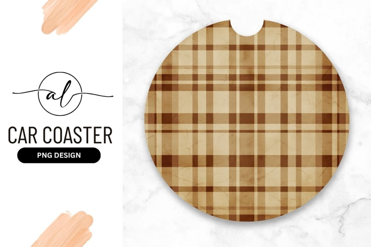 Round Car Coaster Png Beige and Brown Plaid Pattern example image 1
