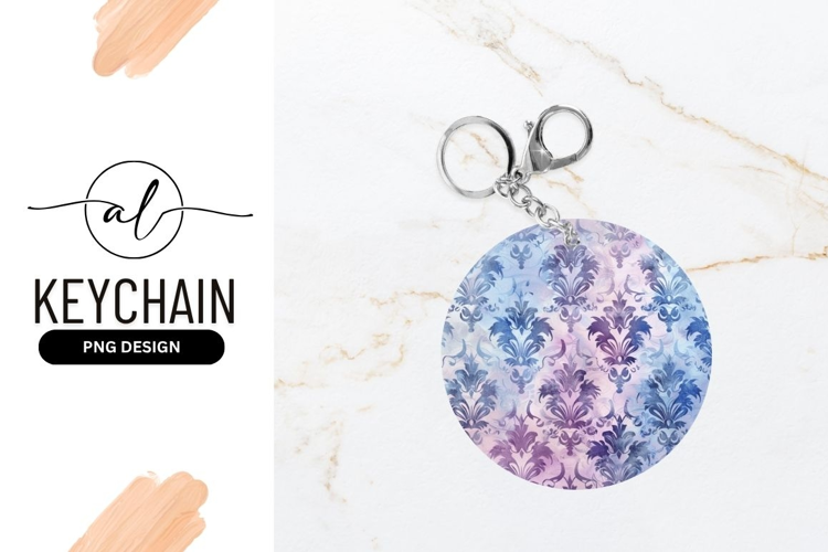Elegant Floral Damask Pattern Round Keychain Png example image 1