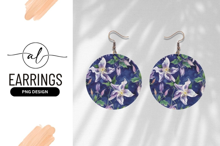 Watercolor Clematis Pattern With Round Earring Png example image 1