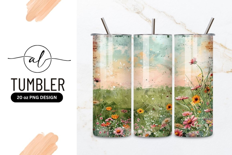 Similar Design Products to Watercolor floral meadow illustration with pink orange