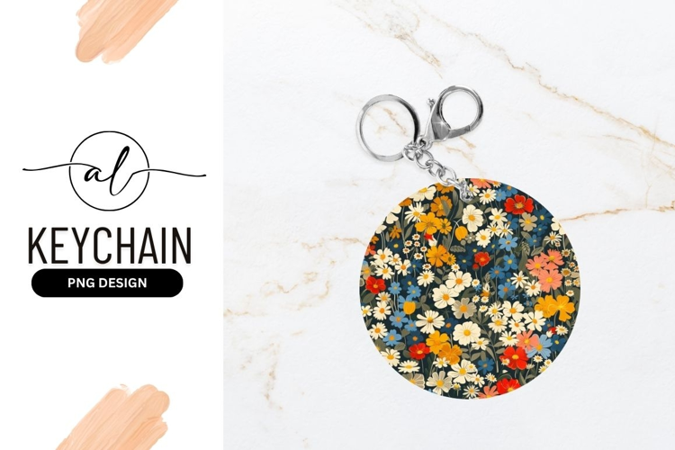Vibrant Floral Pattern Illustration Round Keychain Png example image 1
