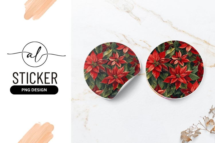 Poinsettia Flowers Seamless Pattern Round Sticker Png example image 1