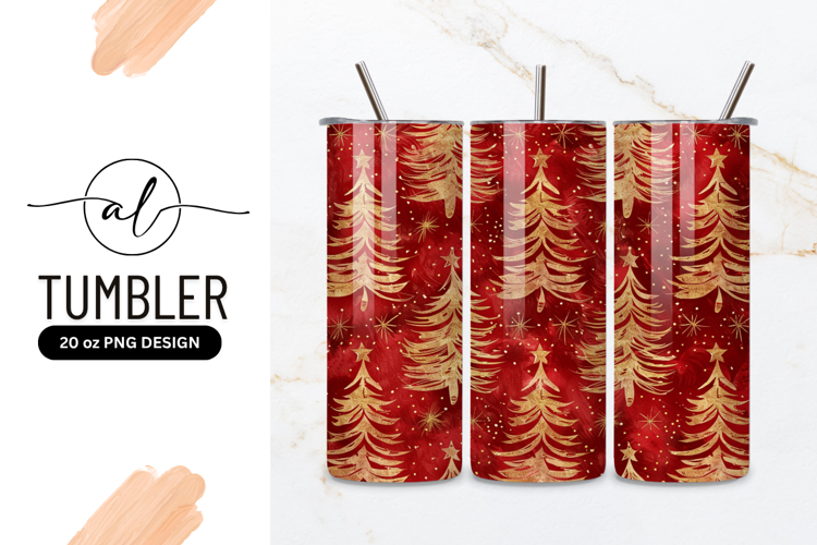 Golden Christmas Trees On Red Tumbler Png example image 1