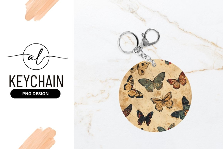Vintage Butterfly Pattern Round Keychain Design example image 1
