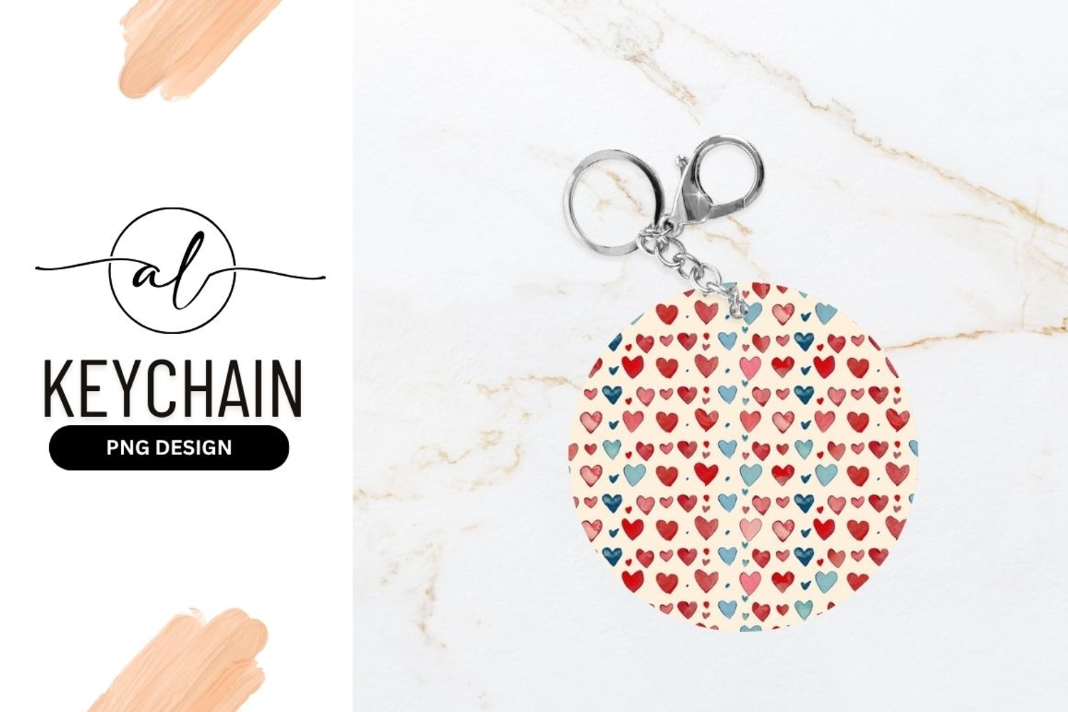 Watercolor Hearts Pattern On Round Keychain example image 1