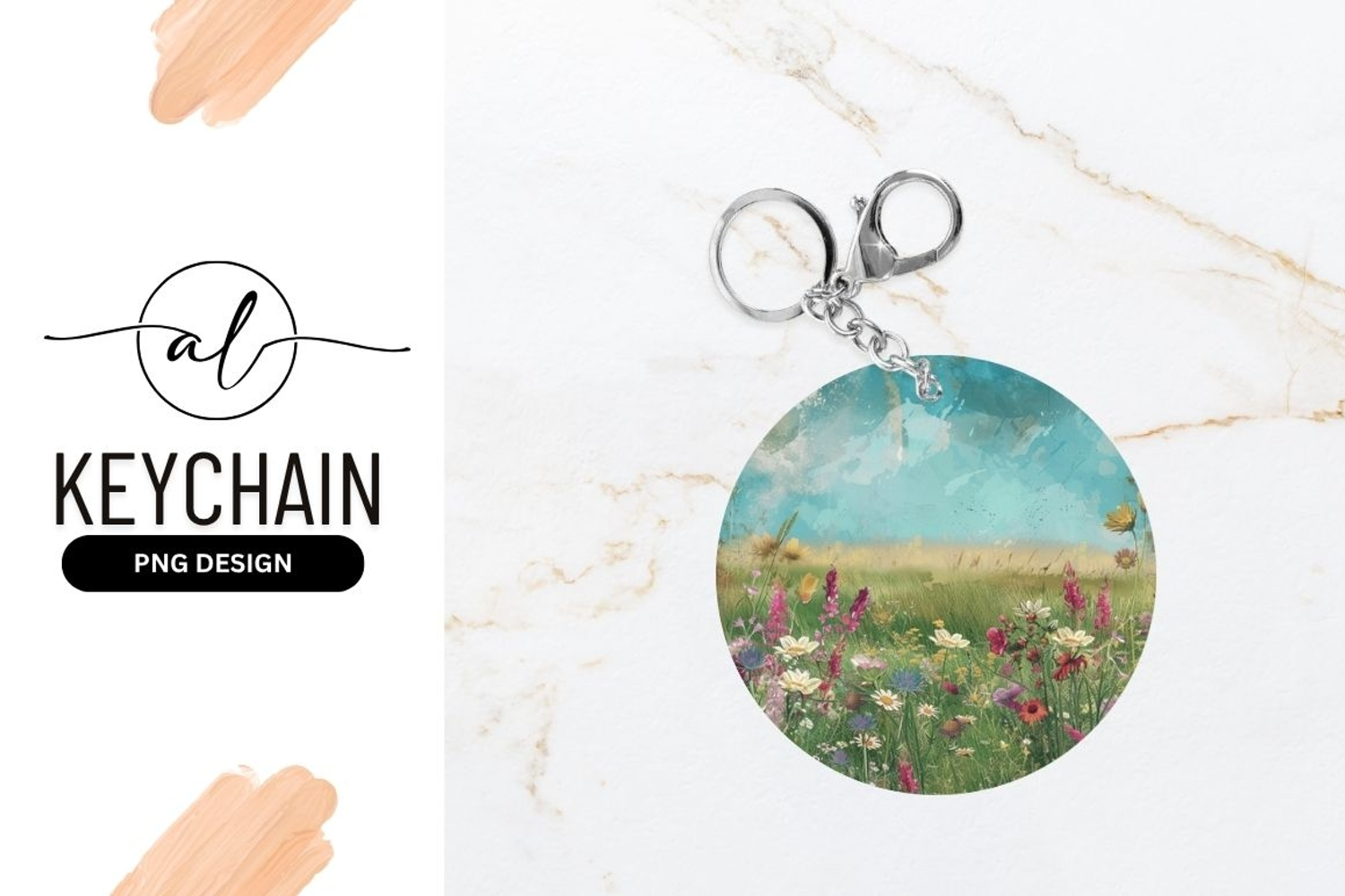 Round Keychain Meadow Wildflowers Artistic example image 1