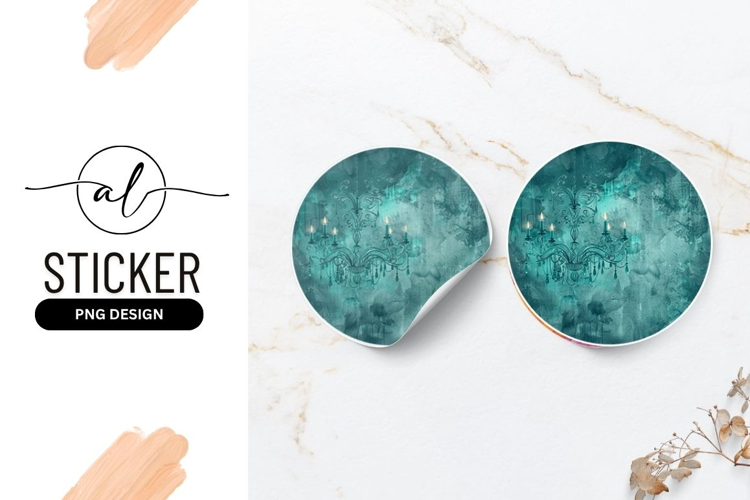 Teal Chandelier Elegant Design Round Sticker Png example image 1