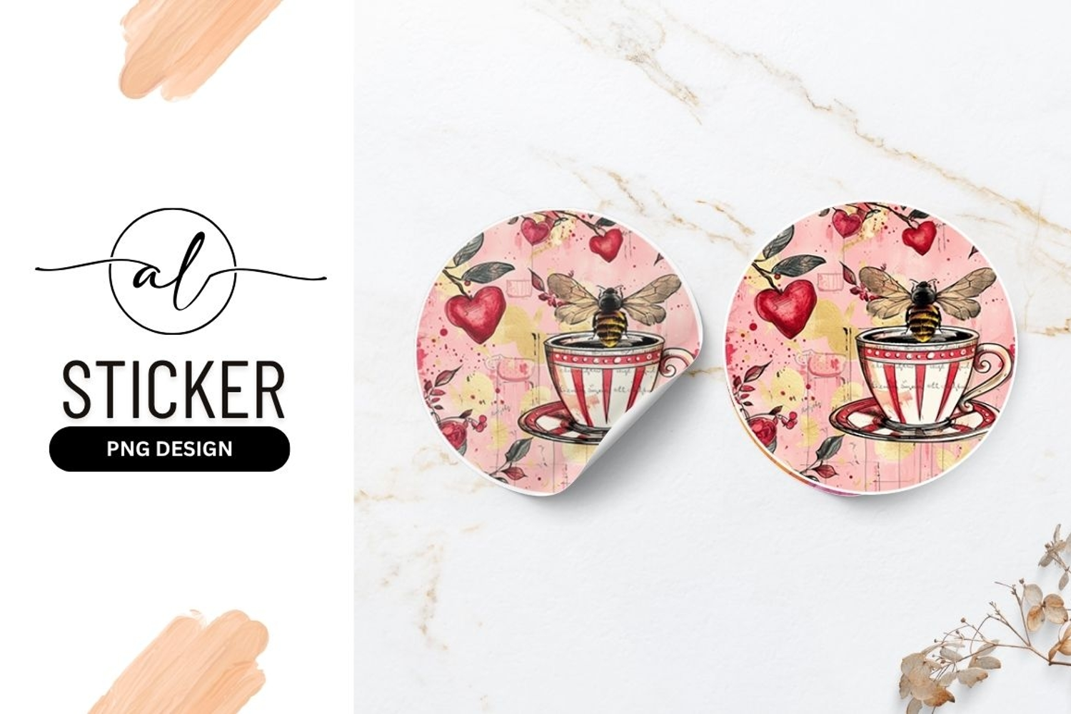 Bee On Cup Love Hearts Round Sticker Png example image 1