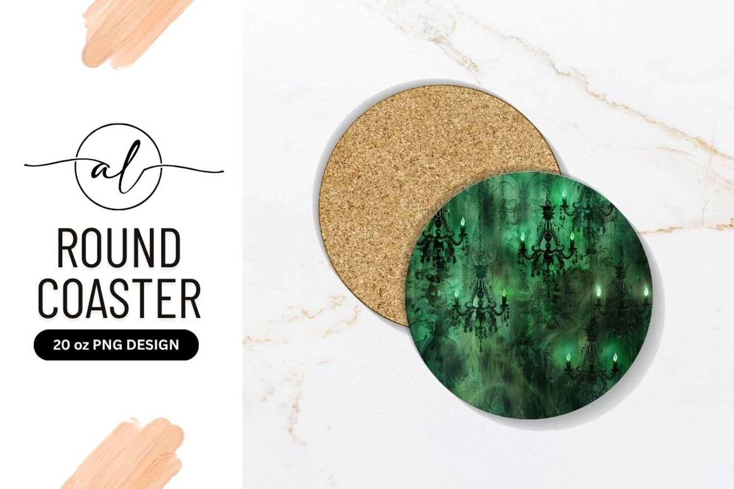 Eerie Green Chandeliers Round Coaster Design example image 1