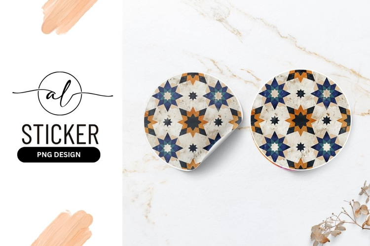 Decorative Ornate Beige Mosaic Arabesque Geometric Pattern Star Pattern Tessellation Islamic Art Round Sticker Png
